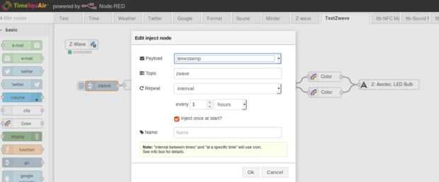 Añadir el nodo «inyectar» y como en las primeras imagenes, se puede establecer el intervalo que quieras por supuesto.