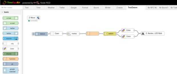 Después de esto, vincular lo nodos «meteo», «función», «cambiar» y finalmente «bicolor» como en la segunda foto.