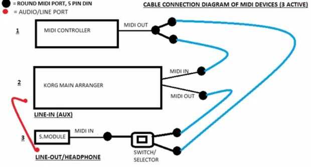 He conectado 3 dispositivos a través de MIDI. Después de cavar duro y un montón de investigación, logré hacer Cables Midi para conectar Korg con módulo de sonido externo y un controlador midi. Resultados son sorprendentes, es como completar otra orquesta, siguiendo su juego. * Midi de controlador Midi out > 1) Korg arreglista y módulo 2) sonido. (hack de divisor de midi) * Midi de Korg Arranger out > módulo de sonido * interruptor para jugar controlador midi directamente desde el módulo de los sonidos, sin encender el korg arreglista. Requiere algunas habilidades de soldaduras, eso es todo. Muchos beneficios... - capacidad de control de filtros, dsp en tiempo real - capacidad para 4 voces en mano derecha de KORG y 3 el módulo, 7 voces en mano derecha de la capa. -completa 16 otro teclado de canal después de acompañamiento de auto de korg. posibilidad de asignar diferentes voces, estoy utilizando módulo de yamaha, puede utilizar cualquiera o conectar otro teclado como adorno o cualquiera. -CAMBIAR el sistema, pura seguridad. así que el midi señales de salida de korg arreglista no choca con midi del controlador. Tengo un controlador midi establece en controlar los parámetros de todos los deslizadores del mezclador, mezclador para que hice un PA500 como PA3X! pero por supuesto sin capacidad de muestreo.