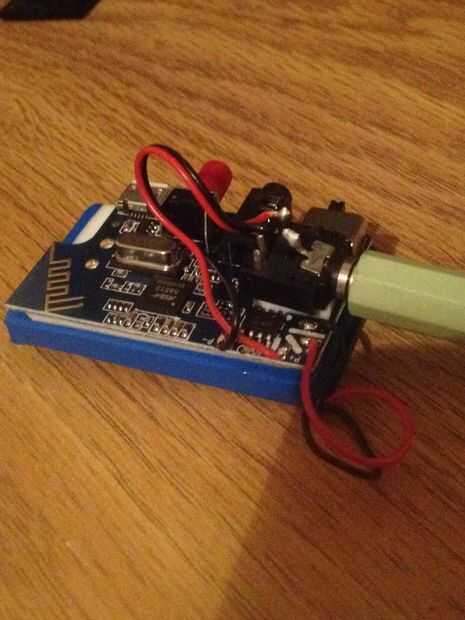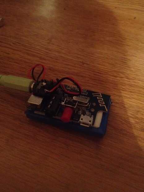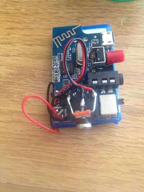 Ahora es el momento compacta todo y hacerlo realmente pequeño! para ello utilicé cinta para conectar la batería al circuito. Después de puse la salida aux justo detrás del interruptor.