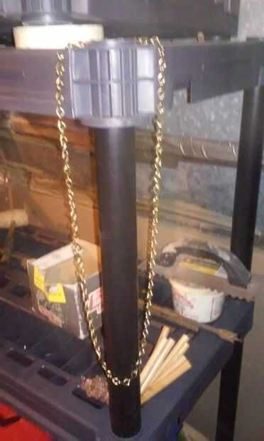 navaja de mango de cadena de bicicletauna lámina de cuchillo roto, sin uso y una cadena de bicicleta aceitoso nacido fuera del matrimonio...1.Es la parte inferior de la hoja con dos orificiosestaba equipado con el conector de cadena, martillado junto