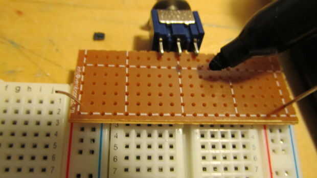 -Utilizar un taladro o el taladro para perforar los agujeros para el conmutador. 3/32" funcionó a la perfección para el interruptor que utiliza.