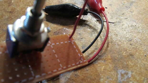 -Asegúrese de que el cable negativo es en la misma fila que las patas del interruptor. Asegúrese que el corte de la pista entre las piernas a que el cable está conectado y la media pierna. Se puede ver en la imagen