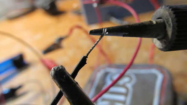 -Luego la soldadura final no estañado de cada alambre en un extremo de la Junta de tira