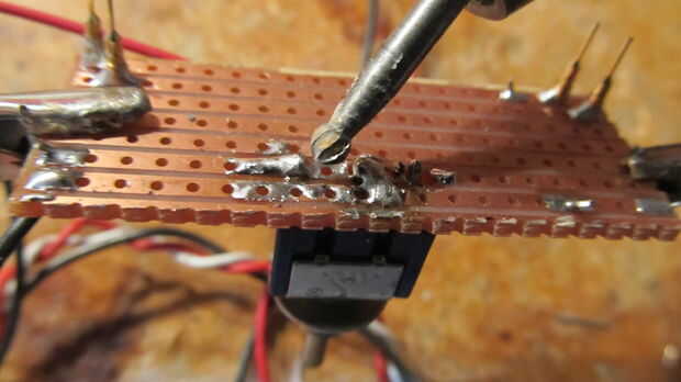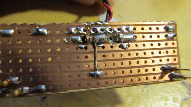 -Liderar su otro componente y soldadura de la media pierna a la línea negativa. Puedes ver la pista de corte en esta foto. --Tratar de hacerlo mejor que los hombres y no tanto la soldadura cada donde.