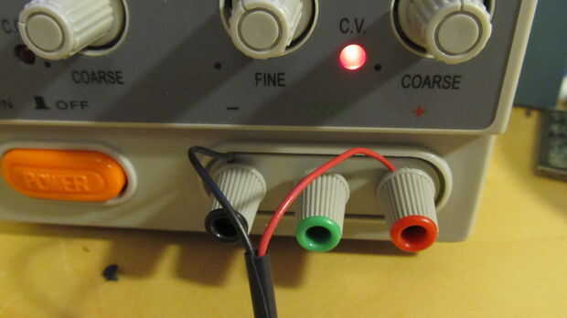 -Conectar los cables en la fuente de alimentación y ajuste el voltaje de la salida y la corriente para su carga.