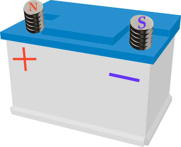 semejantemente para el polo positivo en las caras de polo sur extremo receptor hacia afuera y en batería polo norte así como oposit polos atraen entre sí.
