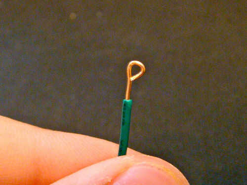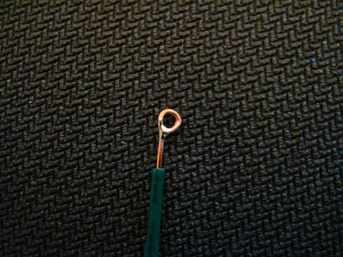 Consejo: No quiero usar un montón de soldadura para hacer esto. Demasiada soldadura podría obstruir la aguja de rosca a través del lazo.