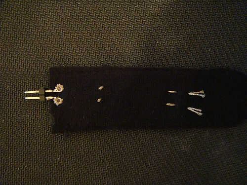 ** Nota: Uso de neopreno tiene una ventaja sobre otras telas debido a que son capaces de enhebrar la aguja en la tela sin tener el hilo en el otro lado. Esto aísla la thread.* *