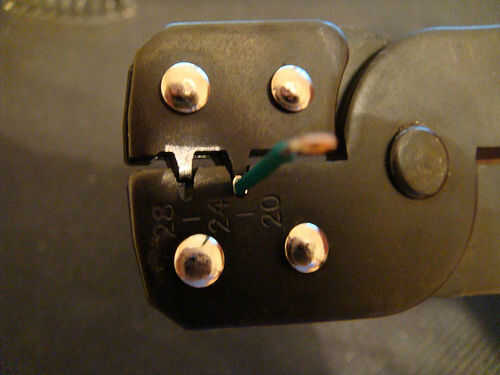 Coloque un alambre y terminal el arrugador del alambre, seleccionando el calibre correcto. Apriete el arrugador del alambre para prensar el terminal.