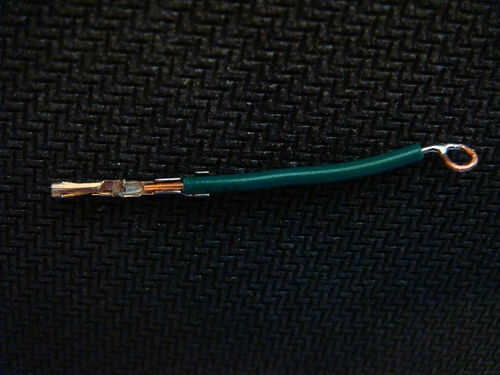 En primer lugar, tira de aproximadamente 1/8" desde el extremo del alambre enfrente del lazo de alambre. Aquí el tamaño importa. Como se puede ver en la primera imagen a continuación, realmente sólo queremos este pedacito expuesto a ser aproximadamente la misma longitud que el segundo juego de lengüetas en el terminal.