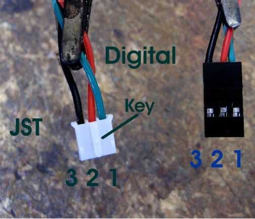 El análogo de Arduino JST 1-Signal(Blue), 2 tierra, 3 + voltios--señal para 1, 2 tierra, 3 + v