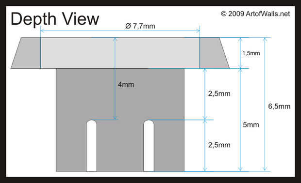 En la primera foto puedes ver las medidas del conector y en el segundo sus profundidades.