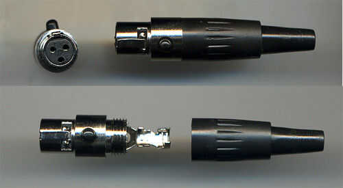 La parte es el mini XLR 3 polos. Solo nos falta el pedazo con los agujeros de perno y puntales de metal y podemos descartar todo lo otro (o guardarla para otro proyecto).