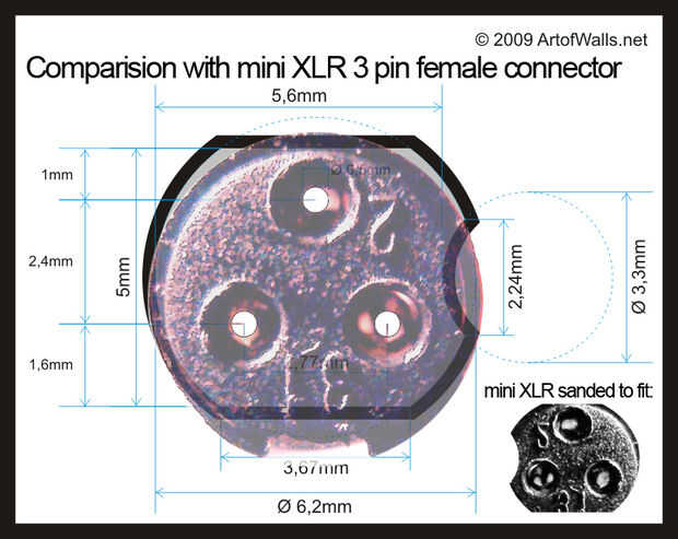 Aquí está una foto de la mini XLR en comparación con las medidas del conector N3.