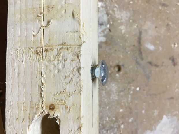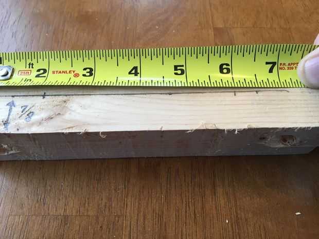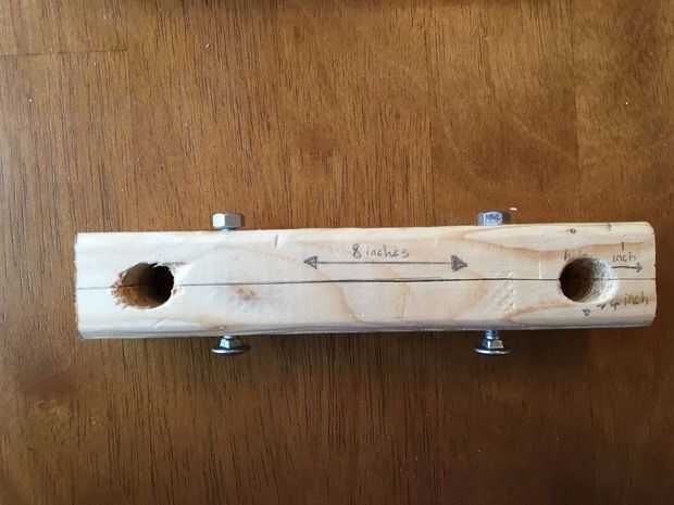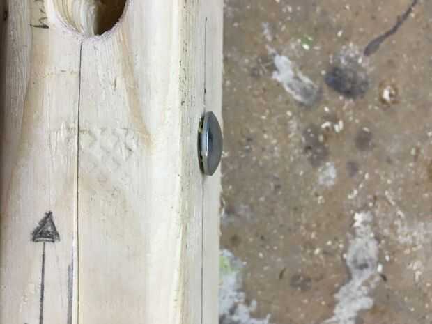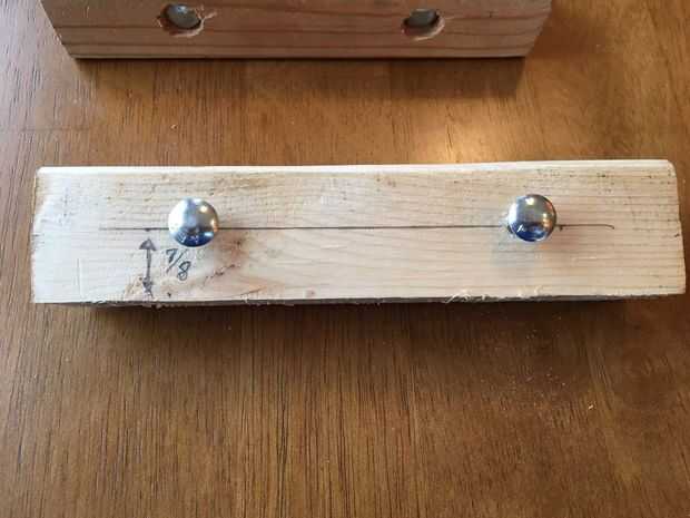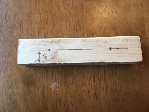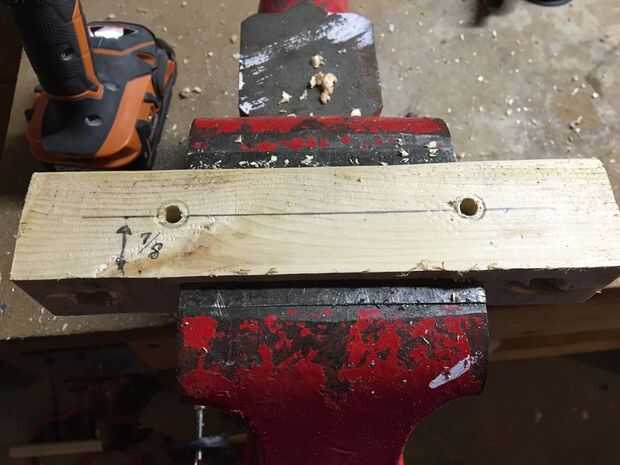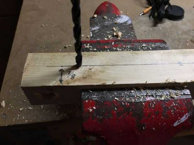 Una vez que han hecho una línea por el medio que desea marcar los agujeros para los pernos. Esto debe hacerse 2 pulgadas cada lado para evitar la perforación a través del agujero del marco y dar todavía la fuerza suficiente madera. Hice las marcas en las líneas de 2 a 6 pulgadas.