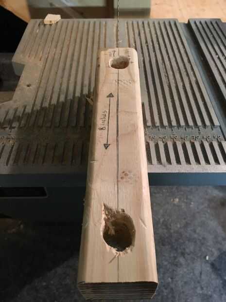 Este último corte se fractura los conectores por el medio y que puedan fijarse a los cochecitos. La línea para el corte ya debe estar allí de cuando hizo las marcas iniciales para los agujeros del marco de 3/4 de pulgada. Esencialmente lo que está tratando de hacer es cortar el para que los agujeros de 3/4 se cortan por la mitad.