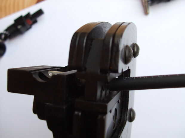 Estamos utilizando un MC4 conector de prensado 2.5-4-6mm para esto porque da una gran conexión cada vez y tiene todos los bits en su lugar cuando usted de la encrespadura.