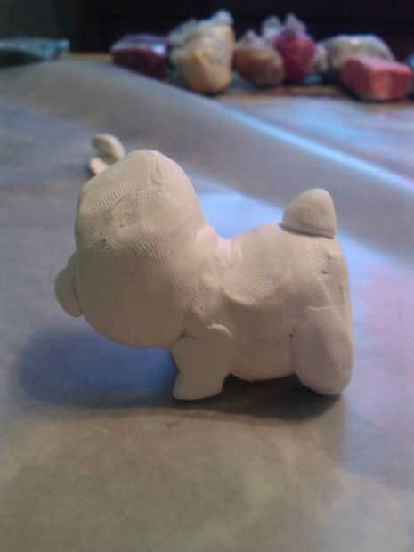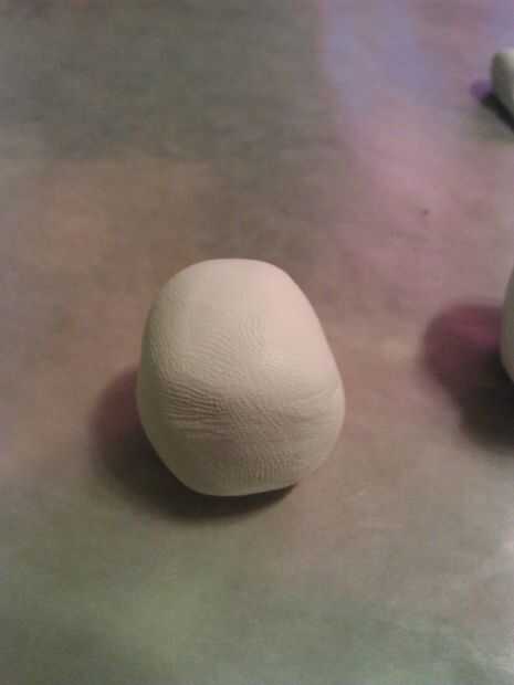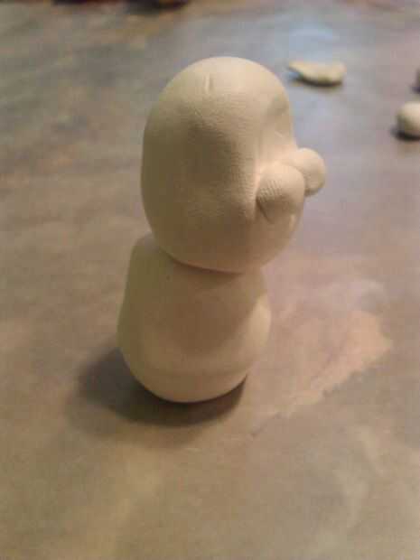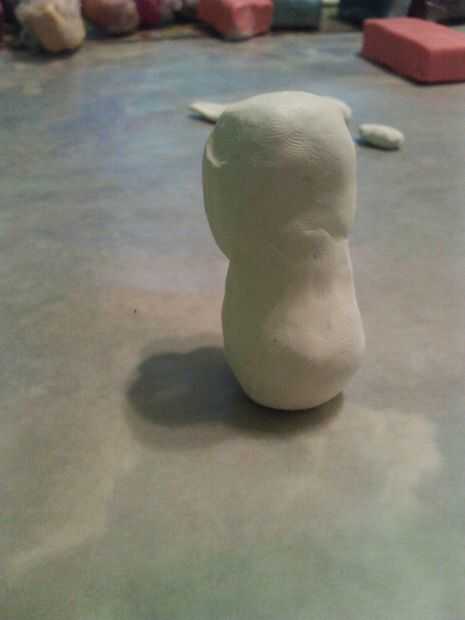 redondo una pieza de arcilla blanca más grande que la cabeza. Esta pieza va a ser utilizado para el cuerpo de la conejita. Coloque el cuerpo en la cabeza y mezcla la arcilla uno al otro. Tire la cabeza hacia atrás lentamente.