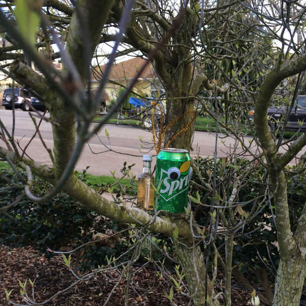 Coloque sus latas alrededor del patio. Si usted quiere hacer más difícil de encontrar, poner la lata contra el más semejantemente colores de fondo. ¿Puede encontrar los "conejos" en estas fotos? Si eres un buen hider, puede escribir la fecha en la parte inferior de sharpie.