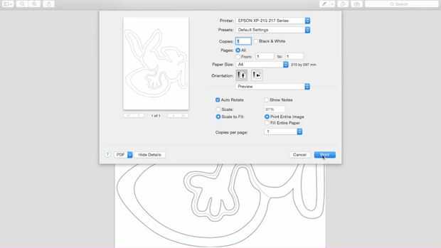 Primero imprimí mi patrón de plantilla. Asegúrese de imprimir con la escala del 100% y no al tamaño.