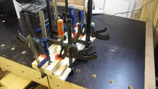 Miré a través de mi almacenamiento de madera y encontró dos piezas de abeto. Por desgracia no eran lo suficientemente grandes como para cubrir el vaso entero, así que decidí hacerla de dos especies diferentes. Como segundo tipo de madera utilicé dos pedazos de desecho de madera de haya laminada.