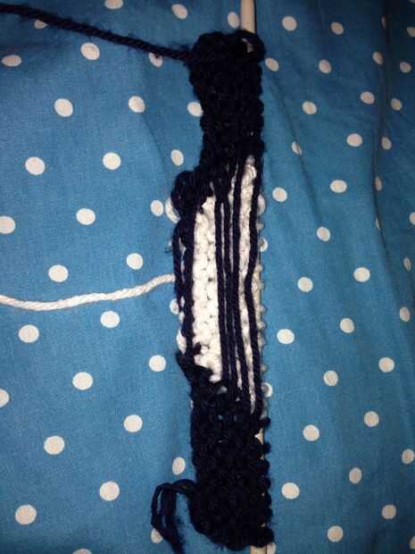 A continuación en puntada punto tejer 11 en A, luego 7 en B, y otros 11 en el A.