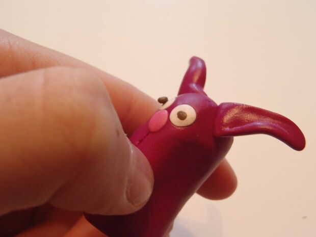 Puede mantener a las pupilas en los ojos pequeños o ampliarlas, ayudando el conejo mira menos loco. Para ampliarlas, romper dos pequeñas piezas del bloque de arcilla. Las piezas deben ser un poco más grandes que el original tamaño de la pupila. Con los pedazos pequeños de sculpey, hacerlas rodar en pequeños círculos. Coloque los círculos encima de cada uno de los alumnos originales y presione hacia abajo, que cubre más área que los alumnos antes.