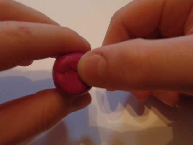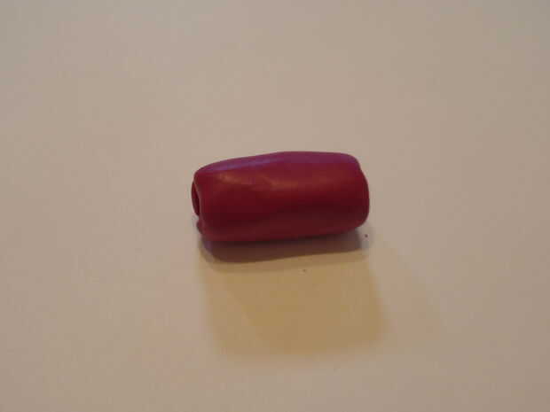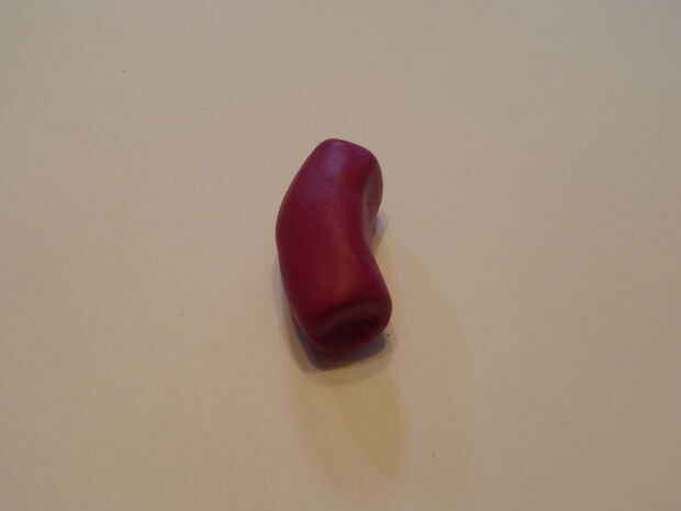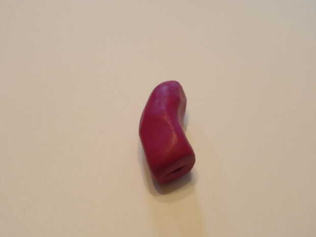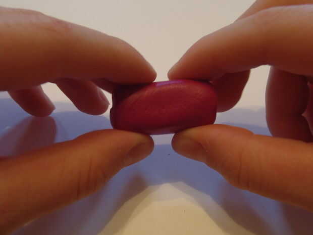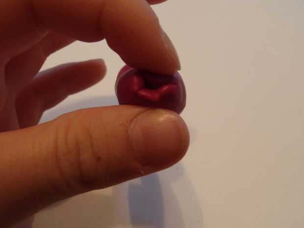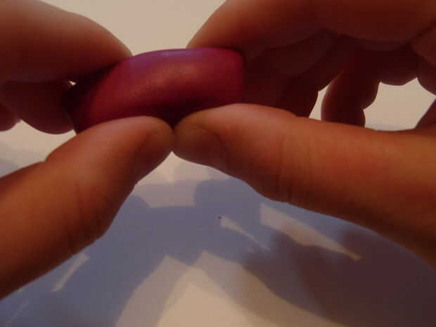 Ir alrededor de la forma de serpiente y presiona alrededor de él con los dedos, lo que es más suave. Aplanar el extremo de la forma de serpiente, moldear los pliegues juntos. Ahora, doblar un poco, haciendo una curva en el cuerpo. La parte superior del sculpey no será tan redondeadas, pellizque un poco arcilla y alisar sobre, crear una parte superior redondeada.
