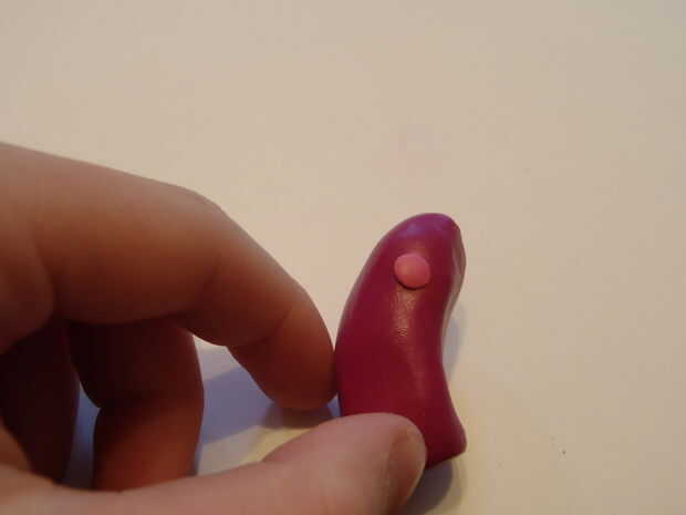Obtener un pequeño pedazo de arcilla y rodar en una bola pequeña. Aplana en la mesa y colocar en el cuerpo.