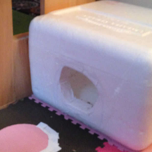 Este es super facil todo que hizo fue conseguir una caja de la espuma de styro cortó un círculo a poner cinta alrededor del círculo y ahí lo tienen super casa fácil.