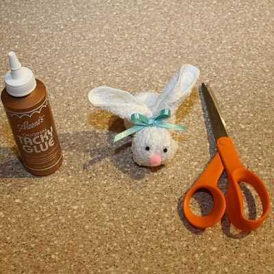 Aquí viene la diversión parte. Ahora haz tu sharpie o saltones ojos y cola. (que siempre uno puedes escoger). Usted también necesitará su cinta si desea uno. Ahora puede pegar los ojos en la cabeza o dibujar con un rotulador, y si quieres tener una boca y luego dibujar también. Si tienes una cinta, lazo alrededor de la goma elástica para que se vea bien. Pegue un POM-POM en la cara como una nariz. También puede pegar la otra POM-POM en la parte posterior para una cola.