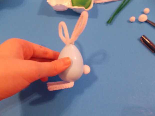 No robar los huevos de conejitos!Paso 1:Lo que usted necesita:FieltroPegamento calienteTijerasHuevos de plásticoTiza de TailerPapelPluma de punta de fieltro del negroPegamento de la escuelaPompones pequeñosLlenar los conejitos con huevos de Pascua mi