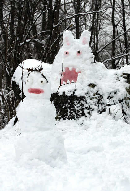Bunnyzilla creado en la parte superior del tocón de un árbol enorme del roble en nuestro patio que había caído y se ha reducido esa caída. Es difícil decir a partir de la foto por el contraste - pero la Bunnzilla fue más de 8 pies de altura cuando se coloca en la parte superior del tocón.