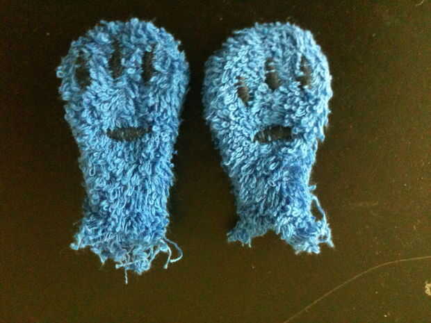 Las "manos" del conejo eran fáciles: simplemente coser dos pedazos juntos e invertidas luego.