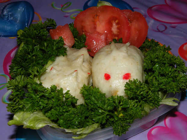 Para hacer bunny bollos, realice dos incisión en la parte superior, creando una forma de V, mientras que para el erizo, básicamente sólo un poco realizar un corte aquí y allá sin cortar a través los bollos :)