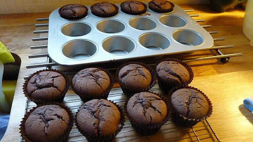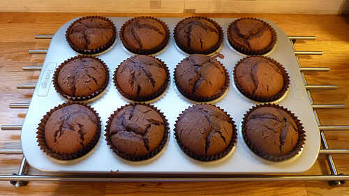 Repartir la mezcla como igualmente entre los casos de papel y poner en el horno durante 25 minutos. Retire cuando firme al tacto, pero todavía suave y elástico por debajo. Colocarlos sobre una rejilla para enfriar en la bandeja durante 10 minutos y luego retirar y déjelos enfriar completamente.