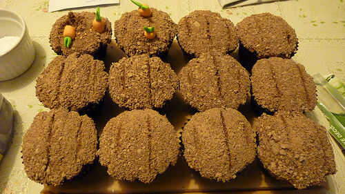 Repita estos pasos hasta que tengas el parche de cupcake relleno con zanahorias y coles que desee. Ahora necesita unos conejos bellaco a Gabo y robar estas verduras!