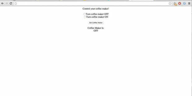 La cafetera de energía enchufándolo a la pared y conecte el linkit uno a un puerto usb para poder. A continuación, abra un navegador de internet y pegar la dirección IP desde el código de prueba y presione Entrar. después de unos segundos, verá tres botones, uno para encendido, apagado, ajustar. Si, presione ON / apagado Pulse el botón "set cafetera". Si empieza a calentar, todo se ha realizado correctamente.