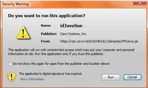 • Una advertencia de seguridad pregunta, "¿desea ejecutar esta aplicación?" Haga clic en ejecutar
