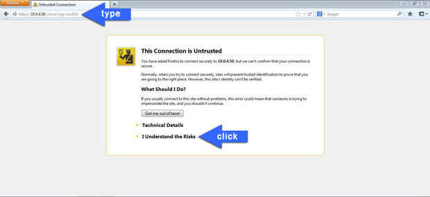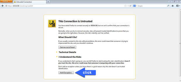 • Haga clic en entiendo los riesgos y añadir excepción...