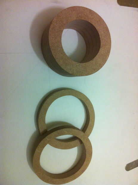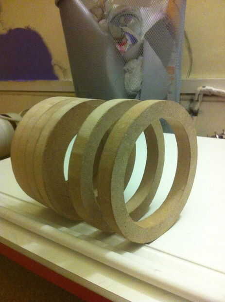 Esta sección se construye del mismo modo como fue capas de la base. Corte seis cilindros de 100mm en MDF de 12mm. Cuatro de éstos debe ser vaciado en anillos con un diámetro interno de 60mm y los otros dos un diámetro interno de 80mm. Esto forma la carcasa superior de la mitad de la electrónica desde abajo para ampliar hasta a y espacio para que la ranura en el inserto clave.