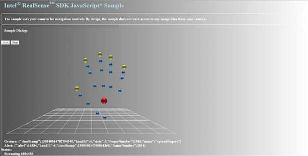 3. Desplácese a la ubicación de instalación y abrir una muestra de JavaScript en RSSDK\framework\JavaScript\FF_HandsViewer\FF_HandsViewer.html