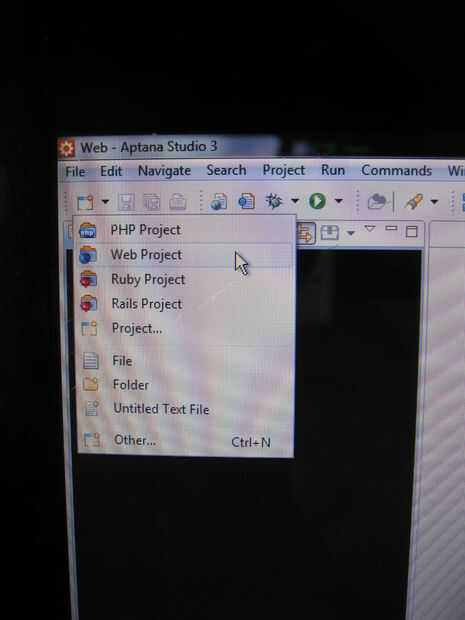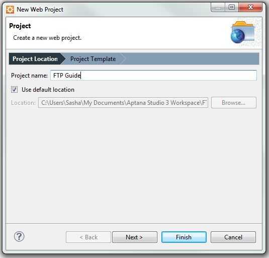 Para crear un nuevo proyecto, haga clic en la flecha junto al botón hacia la izquierda de la barra de herramientas (fila superior de botones de página). Seleccione "Web Project" y continuar hasta el nombre lo que quieras. Haga clic en "Finlandés". No necesitará configurar una plantilla de proyecto.
