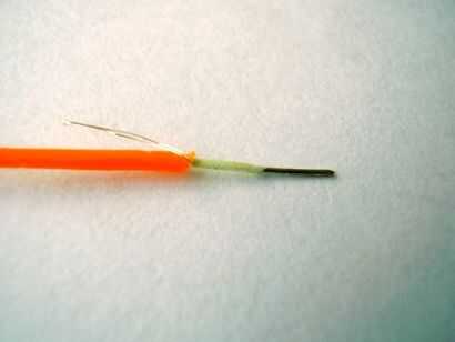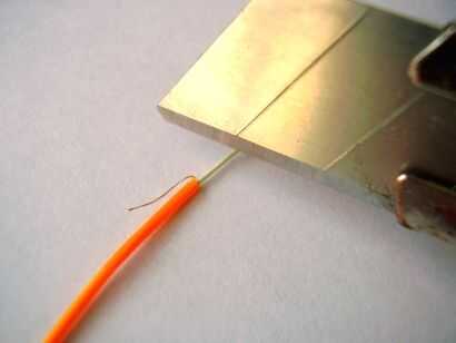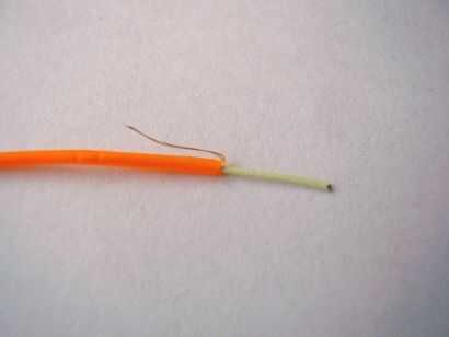 En este punto usted podrá ver que el conductor interior cubierto por la capa de fósforo y los conductores externos, los dos cables finos.