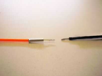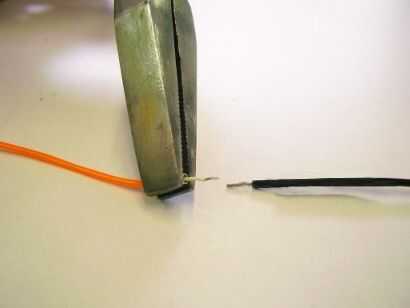 Con un par de prensar alicates la virola alrededor de EL alambre como se muestra en la imagen. Si el diámetro de la virola es correcto los dos cables finos se mantendrá en buen contacto con la férula. La abrazadera también se unirá sólidamente a la manga externa de PVC EL alambre.
