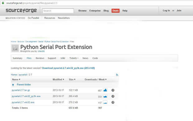 Haga clic en el enlace proporcionado en la introducción y haga clic en el cuadro rojo. Asegúrese de que mueves a tu escritorio. Una vez allí, haga doble clic en el archivo "pyserial-2.7.tar.gz" y creará una carpeta pyserial-2.7.