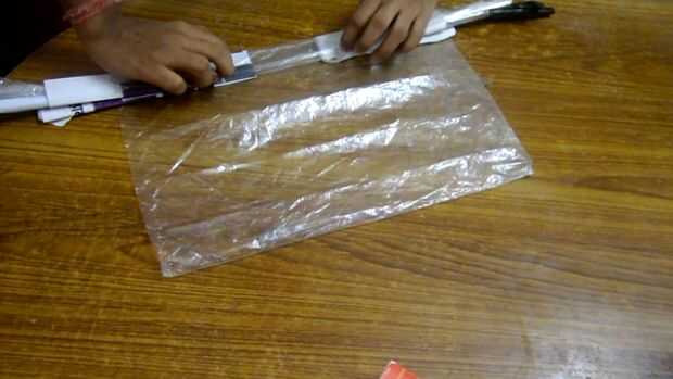 esto es básicamente un método de cordaje natural haciendo uso de bolsas plásticas, que no requieren la separación, golpeando, secado, remojo u otro trabajo de preparación que materiales más naturales. Hay algunos otros hilos aquí y cuerdas de la bols