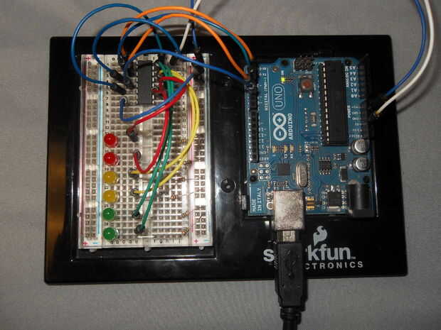 Como su nombre indica, sólo necesitas 3 pines digitales en su Arduino para controlar todas las 8 salidas.