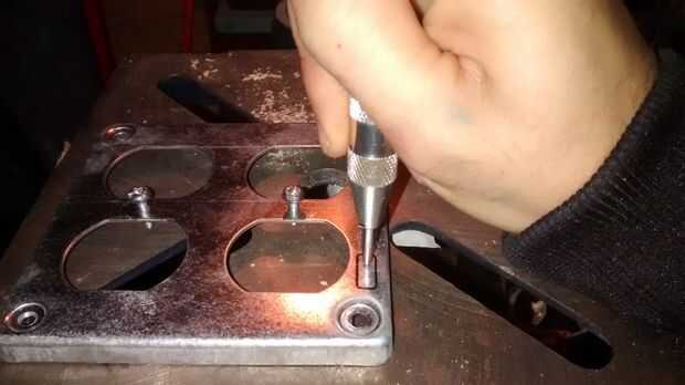 puse la pinza a la mitad del ancho del agujero y describen un poco + para la perforación. Ya que estamos haciendo un orificio rectangular, marque con un punzón cerca de ambas extremidades.